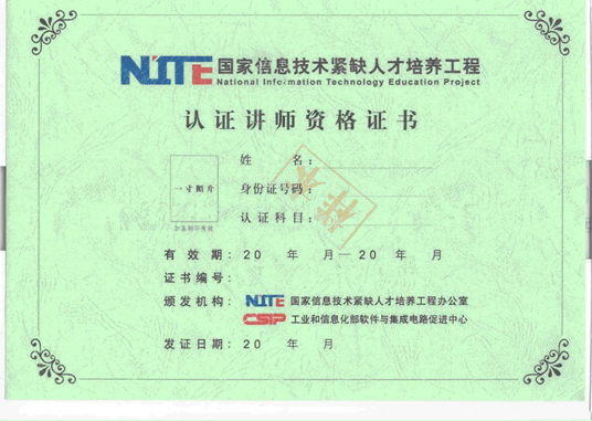 修完全部课程并通过考核,可自愿申请由工业和信息化部软件与集成电路促进中心颁发的“国家信息技术紧缺人才培养工程认证讲师资格证书”。
