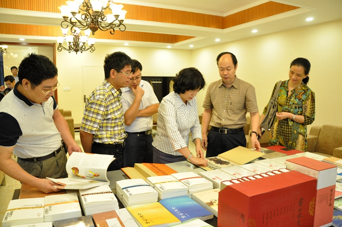 大会期间,林处长及各出版社同仁还参观了陕西师范大学出版社布置于首阳书院的精品样书展,林处长对陕西师范大学出版社出版的“十二五”国家规划项目《中国民间泥彩塑集成》及“2014中国好书”《先前的风气》等爱不释手,称赞质量优秀,装帧精美,是真正的精品图书。