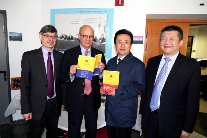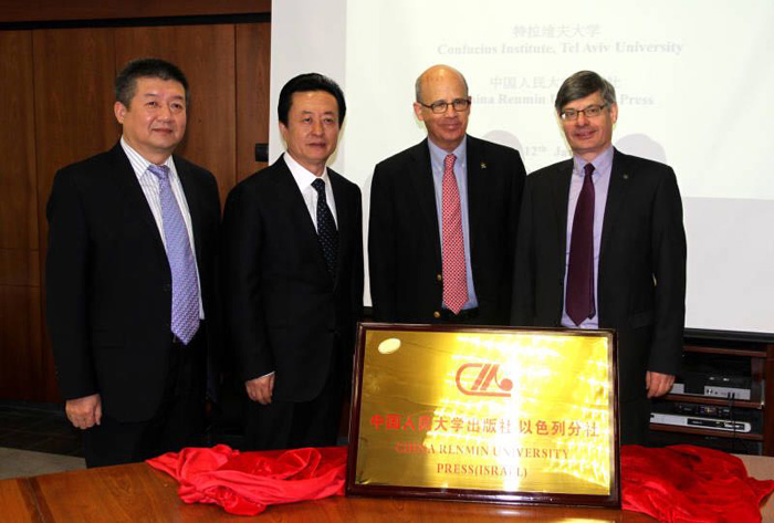 当地时间2016年1月12日上午9点,中国人民大学出版社以色列分社揭牌仪式在以色列特拉维夫大学隆重举行。新闻出版广电总局副局长孙寿山、新闻出版广电总局数字出版司司长张毅君、新闻出版广电总局进口管理司司长蒋茂凝、新闻出版广电总局机关党委常务副书记孙文科、中国驻以色列国大使馆教育处专员姜言东、特拉维夫大学校长约瑟夫•克拉夫特、特拉维夫大学副校长拉南•雷恩、特拉维夫大学孔子学院外方院长郭志松、特拉维夫孔子学院中方院长吴洋、中国人民大学校长助理贺耀敏出席了本次活动。