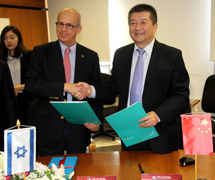 中国人民大学校长助理贺耀敏和特拉维夫大学校长约瑟夫•克拉夫特-以色列分社签约