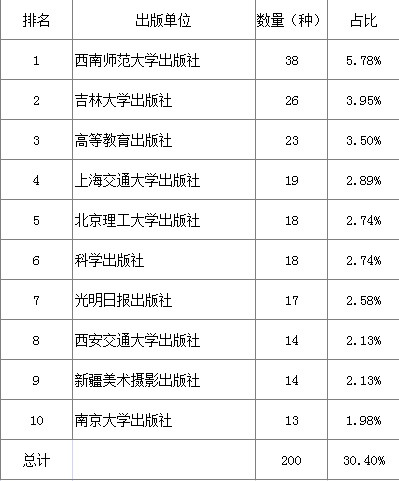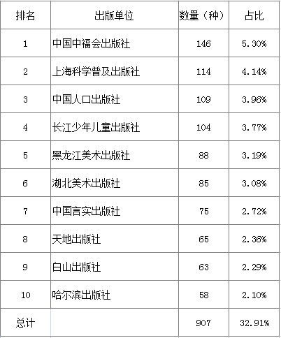 8个细分种类图书出版单位排名前十见表3-表10。