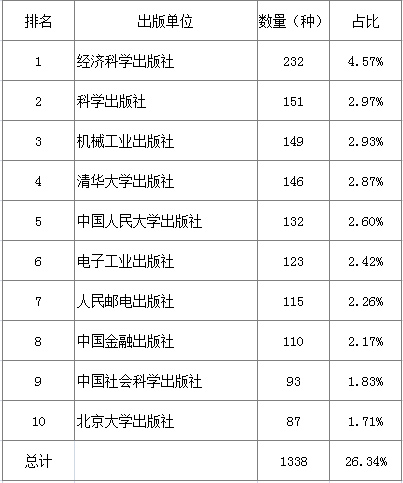经济类:经济科学出版社数量最多