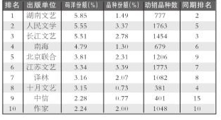 出版社零售品种排行TOP10