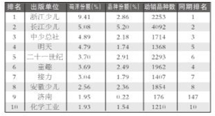 出版社码洋份额排行少儿类TOP10