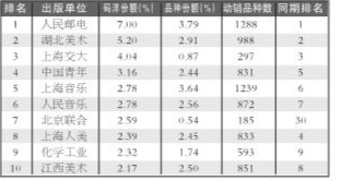 出版社码洋份额排行艺术类TOP10