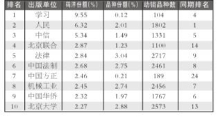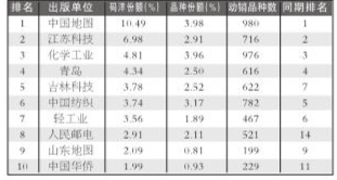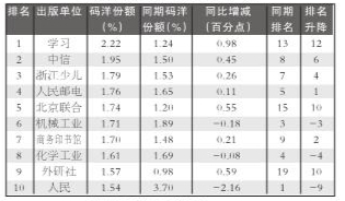 细分市场出版社排名 出版社零售码洋排行TOP10
