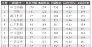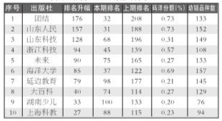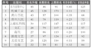 出版社排名环比升幅 整体市场出版社排名环比升幅TOP10