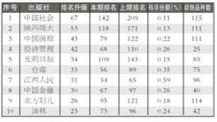 出版社排名环比升幅社科类TOP10