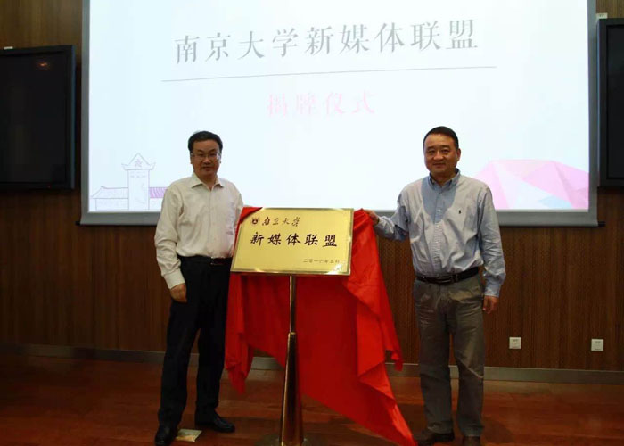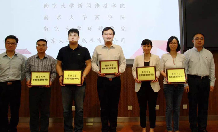 南京大学新媒体联盟共遴选出首批理事单位10家,南京大学出版社位列其中。南京大学党委办公室主任王云骏、信息化建设与管理办公室主任、网络信息中心主任朱亦宁、党委学生工作部部长、学生工作处处长龚跃和共青团南京大学委员会书记葛俊杰为第一批新媒体联盟理事单位颁发了证书。