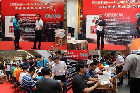 6月12日,由暨南大学出版社主办的《恒之有道——广东足球的史经子集》新书首发式在广州购书中心隆重举行。中国足球队教练区楚良,足坛名宿彭伟国,本书作者著名体育媒体人陈伟胜和资深足球专职记者张喆、李斌,暨南大学出版社社长徐义雄、副总编辑晏礼庆等出席首发式。首发式由广东广播电视台体育频道节目主持人陈宁主持。