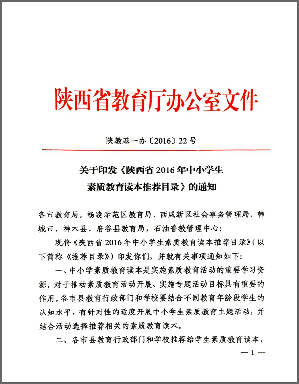 《陕西省2016年秋季至2017年春季中小学教学用书地方课程教材补充目录》和《陕西省2016年中小学生素质教育读本推荐目录》新增品种评选工作从2015年9月开始,经历了项目申报、立项评选、组织编写和专家盲评四个阶段,陕西师范大学出版社四个项目在立项评选和专家盲评两个评选环节中均以第一名的好成绩通过评审。