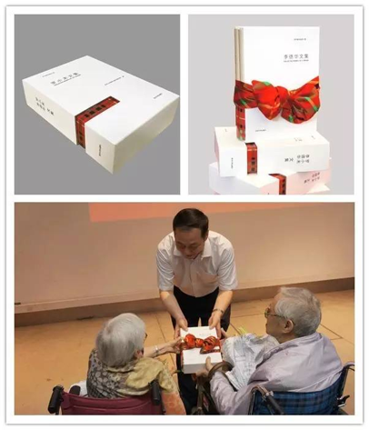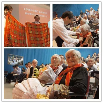 杨贤金书记代表同济大学向李先生、罗先生赠送《李德华文集》《罗小未文集》。书函上所系方巾的原型,就是李先生当年送给罗先生的围巾。而文集的腰封也是参照围巾样式设计的。
