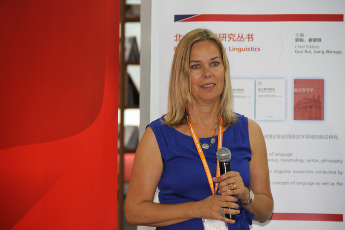 北京大学出版社张黎明总编辑在致辞中回顾了北京大学语言学学科的发展历程和累累硕果,介绍了此次合作的两套丛书的学术前沿性及创新性,相信它们的出版将促进中国语言学的发展,同时引领世界语言学的潮流。施普林格Myriam Poort女士表示,施普林格自然集团和北京大学出版社均是国际知名的学术与教育出版机构,两社的这次合作可以将语言学最新研究成果和学术思想广泛推介、传播到国际学术界,意义非常重大。丛书主编郭锐教授介绍了中国语言学研究的悠久历史以及延续三千多年的汉语文献、少数民族语言、方言等丰富的研究素材,希望这两套丛书的出版可以展现中国语言学研究的进步,回馈世界,让世界语言学界了解中国语言学研究。
