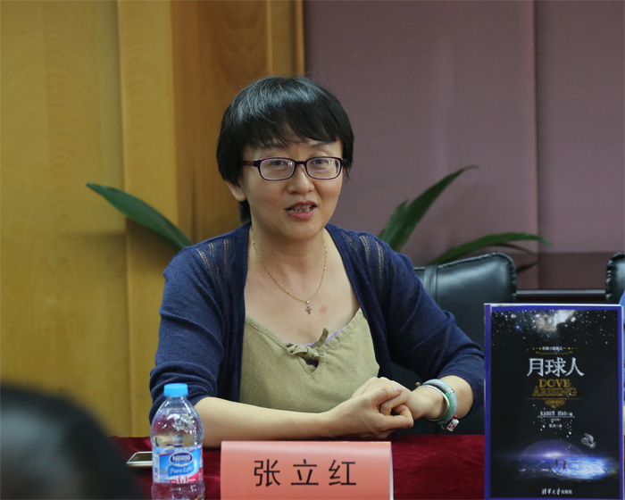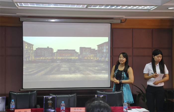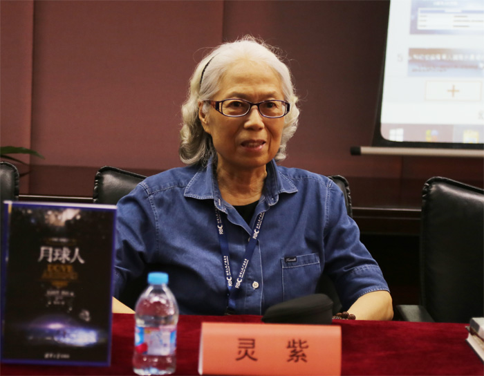 会议开始之初,灵紫老师在发布会现场跟大家分享了她在科幻小说创作过程中的心路历程,以及看到了《月球人》这部小说后的欣喜和感动,她称赞月球人是她目前看到的年轻作家创作出来的非常精彩并且极具想象力的小说,认为小说具有很强的科幻色彩,她非常欣赏鲍嘉璐的小说创作才能。灵紫老师表示她的孙女非常喜欢这部小说,视小说作者鲍嘉璐为偶像,灵紫老师在会场开玩笑说她今天终于见到了孩子的偶像。