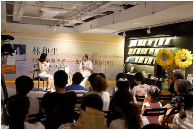 签售分享会在一部讲述凡·高创作生涯的动画微电影中拉开序幕。主持人李小英用磁性温润的嗓音向现场来宾道过午安,并以一篇散文诵读向大师致敬,之后作者林和生先生登台演讲。林和生先生就创作动机;写凡·高读凡·高在当下的意义;在浅阅读的微信时代,一本需要沉淀下来品读的书会给读者带来什么等问题,与主持人和读者展开了互动。紧接着,林和生先生从童年的伊甸园、播种与收割:在人性与艺术的麦田、空椅子、粉红桃花盛开、你是星空中我要飞去的方向5个视角,解读了凡·高的30余幅画作,以及画作背后鲜为人知的故事和心路历程。作者演讲结束后,读者积极参与“向大师致敬”——带上向日葵头套拍照,扫出版社二维码获赠明信片的活动,并购买图书与作者拍照、交流,现场气氛欢乐融洽,读者与作者共享了一场认识凡·高的文化之旅。