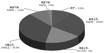 与2016年商报高端调查相似,在此次高端调查中,大部分受访对象对2017年书业的发展持乐观态度。累计有77.36%的受访者表示看涨,其中,58.49%的受访者认为“稳中有升,增长5%以内”,同比2016年高端调查下降15.58个百分点;18.87%的受访者认为“将快速增长,涨幅超过10%”,同比2016年高端调查增长11.46个百分点。认为“与2016年基本持平”的受访者占9.43%,认为“略有下降,降幅5%以内”的为13.21%。一系列反馈数据的变化,显示了从业者一方面对2017年整体发展环境葆有信心,另一方面也对激烈的行业竞争和市场变数持谨慎乐观态度。