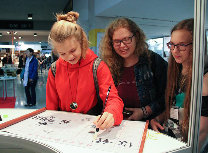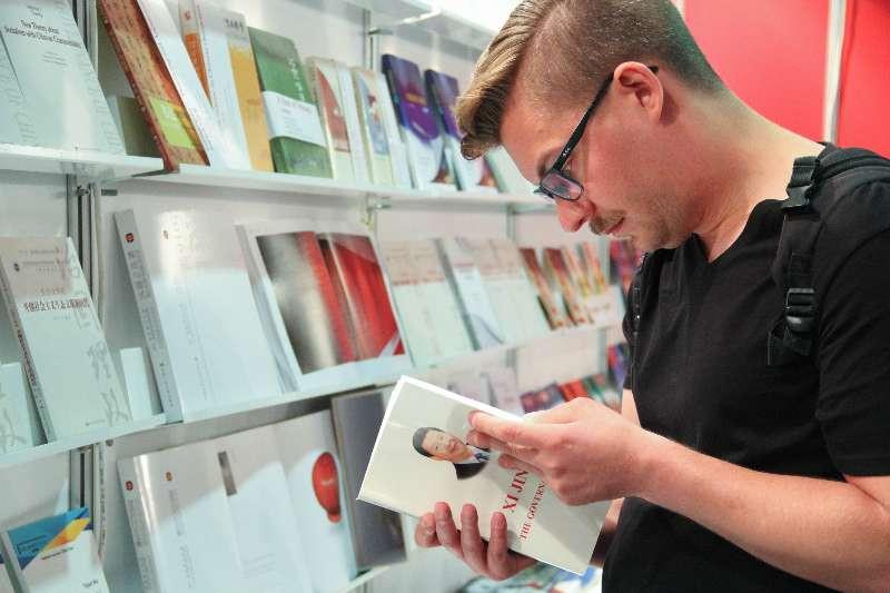 除图书以外,本次书展还展示了中国画、中国结、京剧脸谱、剪纸、屏风、折扇、毛笔、书签等中国特色的展品,让中国优秀图书展展台成为参观读者体会中国文化、拍照留影的“胜地”。