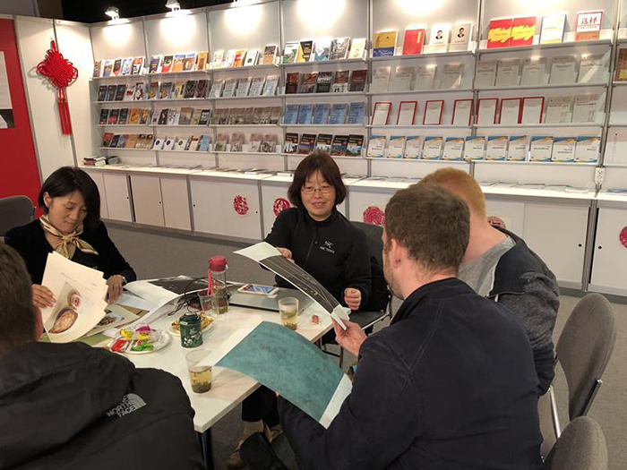 中国驻波兰使馆文化参赞蔡炼女士也来到中国展台,和人大出版社人员亲切交谈并提出了很多关于外宣和“走出去”的宝贵意见。