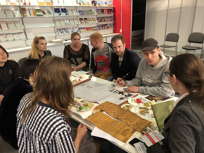 中国人民大学出版社举办的《大漆与中国文化》和《北京味道》的图书推介活动也吸引了众多当地读者。向波兰读者介绍了《大漆与中国文化》《北京味道》两本图书。在活动现场,热情的读者不分男女老幼,围坐一圈,一边品尝北京特色小吃和中国茶,一边欣赏精美的图书和聆听生动的讲解,津津乐道、气氛融洽。《大漆与中国文化》体现了中国当代艺术家让中国传统艺术在当代发扬光大的探索过程,也体现了中国漆融入西方艺术、走向世界的发展过程。《北京味道》通过介绍北京的饮食文化以及其中所蕴含的历史、情感与记忆,从中了解北京的城市文化和特色。