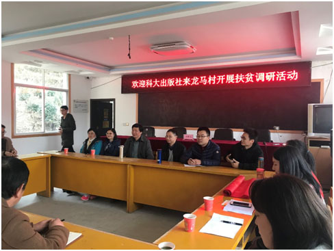 最后,中国科学技术大学出版社伍传平社长向参会干部介绍了中国科学技术大学出版社发展的情况,表示中国科学技术大学出版社一直很关注龙马村的脱贫工作,今天特地把骨干党员都带到龙马村了解情况,希望利用我们的专业为龙马村的文化宣传和农家书屋图书策划多做些工作。