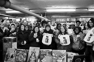 美国前第一夫人米歇尔·奥巴马的粉丝出现在芝加哥第57街书店,为她的新书《成为》午夜发布会共同庆祝。