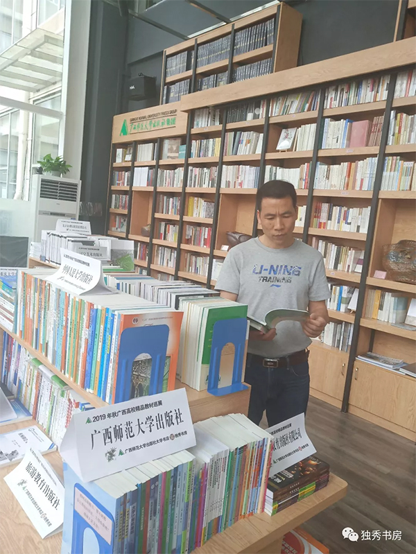广西师范大学出版社集团大学书店总经理容罡谈道,独秀书房作为一个多功能的文化复合空间,是为高校服务的前沿哨所,就是要真真实实地服务高校,做到“校店融合”,真正践行独秀书房这一大学“人文实验室”的功能。“本次教材巡展只是我们为高校服务中间环节的一个亮点,只是我们为高校服务的众多事情中的一件,我们会随时根据师生的需求、根据时间节点为老师的教学、为学生的阅读、为师生文化活动环境的打造创造便利条件。”