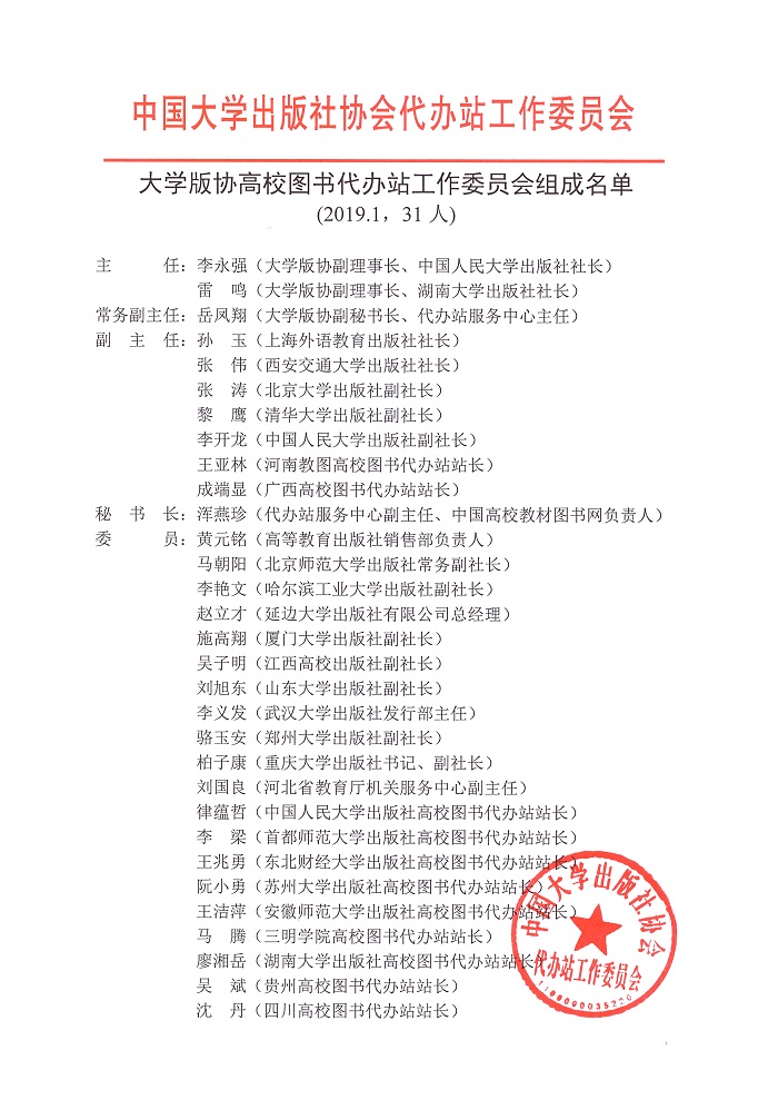 中国大学出版社协会代办站工作委员会名单