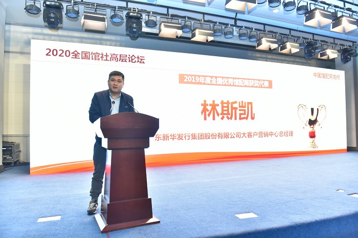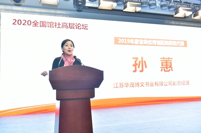 论坛举行了“2019年度全国优秀馆配商评选”活动颁奖仪式。该评选活动已于2019年12月正式落下帷幕,组委会本着“公平公正、公开透明、诚信规范”的原则,最终评选出“全国优秀馆配商”20家、“全国优秀中小学馆配商”8家、“全国优秀馆配出版社”15家、“全国优秀图书馆数字内容供应商”5家、“全国优秀图书馆智能技术服务商”5家、“省级优秀馆配商”45家。 广东新华发行集团股份有限公司大客户营销中心总经理林斯凯、江苏华茂博文书业有限公司副总经理孙蕙发表获奖感言。