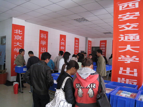 由大学版协代办站工作委员会、高校出版社图书代办站服务中心主办的“2009全国高校教材巡展季活动”,陕西地区巡展由陕西唯一一所高校图书代办站----西安交通大学出版社高校图书代办站承办,日前已全面展开。整个活动时间为2009年4月1日~~5月20日,陕西地区首场展出活动于4月1日在西安交通大学举行。参加陕西教材巡展活动的出版社有:北京大学出版社、北京师范大学出版社、人民教育出版社、科学出版社、北京交通大学出版社、对外经贸大学出版社、中国铁道出版社、中国商务出版社、中国财政经济出版社、上海财经大学出版社、西南师范大学出版社、郑州大学出版社、合肥工业大学出版社、湖南大学出版社、湖北美术出版社、武汉理工大学出版社、西安交通大学出版社、西北工业大学出版社、陕西人民出版社、陕西人民美术出版社等20家出版社。巡展的教材主要是近三年新出的教材和“十一·五”规划教材;品种达4000余种,含盖理工农医、人文经管法、外语等方面;层次有研究生、本科和高职高专。