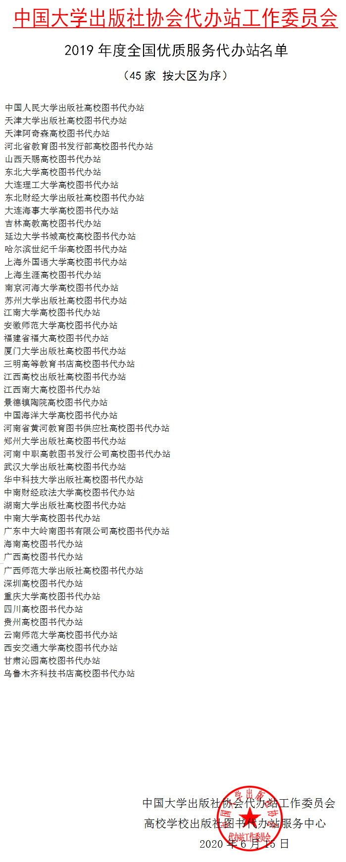 2019年度全国优质服务代办站名单 - 代办站经营之道 - 中国高校教材图书网