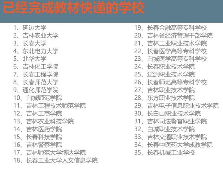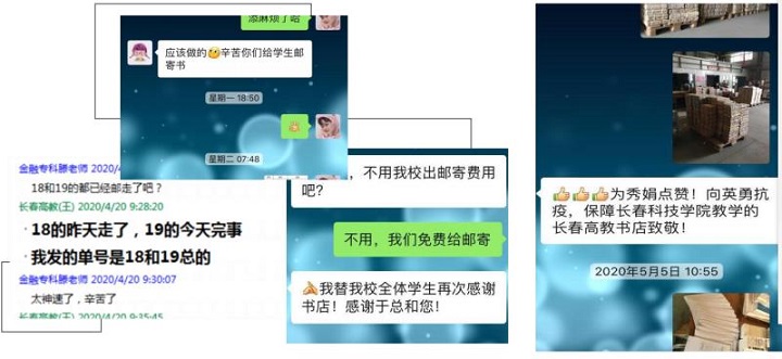 为了满足高校线上教学的刚性需求,保证学生“课前有预习,上课有教材,课后有复习”的学习效果,长春高教从前期组织策划方案到全部教材的分拣邮寄,从2020年2月29 日至5月14日,历时78天。根据学生的选课情况配发不同的教材,可以说这次每个学生收到的教材包裹都是为他们量身定制的。