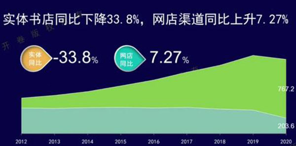 最新的开卷监测数据显示,2020年,线上渠道销售同比增长7.27%,线上渠道规模占比已达79%。以新华文轩、浙江新华等为代表的实体渠道也在不断加大线上销售权重,线上销售已呈现不可逆的趋势。销量和销售规模,主要依靠线上渠道,线下则更多承担的是品牌展示、读者服务等功能。
