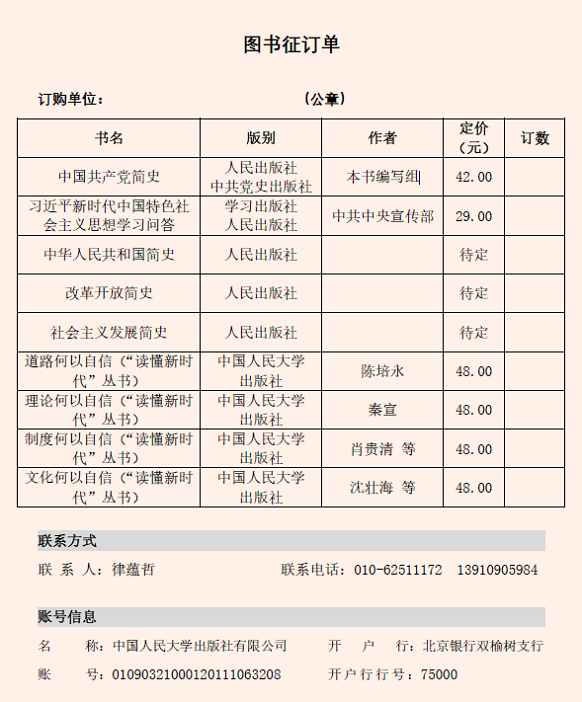 中国人民大学出版社高校图书代办站 2021年6月1日
