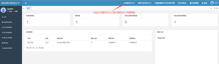 2.高校教材管理云平台的用户,可以通过高校教材管理云平台账号(初始密码为123456)进行登录;在云书展平台输入教材云的账号,输入初始密码123456进行登录,如下图所示。