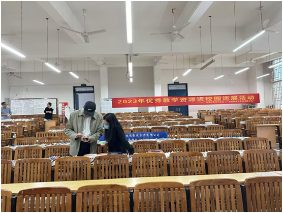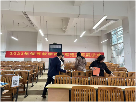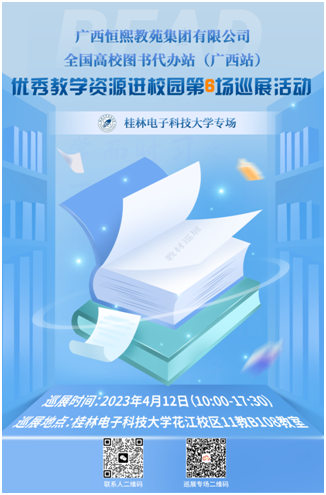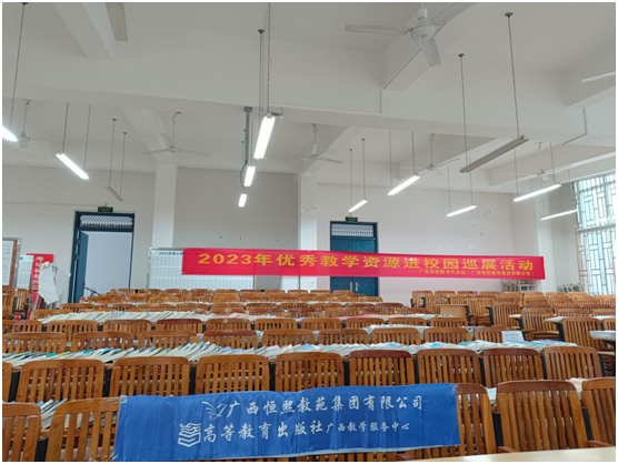 2023年4月12日,2023全国高校教材巡展(广西站)优秀教学资源进校园第6场巡展活动在桂林电子科技大学花江校区11教B108教室举办。