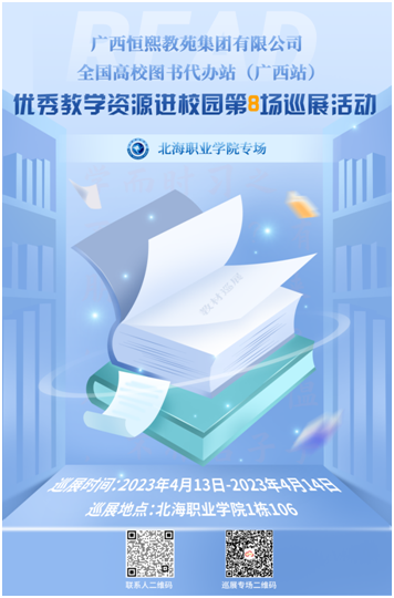 2023年4月13日至4月14日,2023全国高校教材巡展(广西站)优秀教学资源进校园第8场巡展活动在北海职业学院1栋106教室举办。