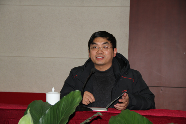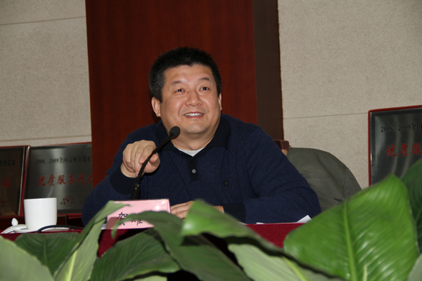 全国高校图书代办站服务中心主任岳凤翔做工作报告