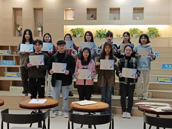 演讲协会的同学们身着白衬衫,在独秀书房·贺院店内进行经典共读。他们眼神坚定、气质昂扬,展现出青年蓬勃的朝气与赤诚的爱国之心。