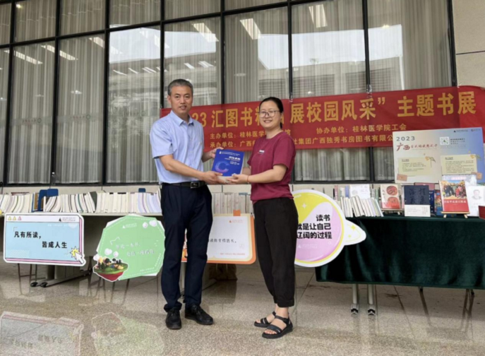 书展现场还接受读者咨询和优秀书目推介,并进行了面对面的交流分享。活动期间,老师和同学们的参与热情高涨,纷纷表示感受到了阅读对提高大学生素养和校园文化建设的意义,部分读者们在现场还获赠了自己感兴趣的图书。本次书展活动加强了图书馆与读者间的联系,收获满满好评。活动结束后,广西独秀书房图书有限公司向桂林医学院图书馆捐赠图书二百余册。