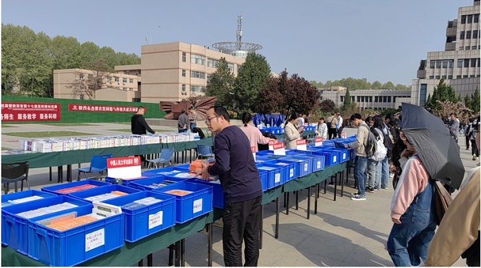 西安交通大学出版社高校图书代办站从3月初即着手准备此次巡展,邀请了高等教育出版社、中国人民大学出版社、北京大学出版社、清华大学出版社、外语教学与研究出版社、北京师范大学出版社、北京理工大学出版社、国家开放大学出版社、大连理工大学出版社、哈尔滨工业大学出版社、中国地质大学出版社、武汉大学出版社、武汉理工大学出版社、中国科学技术大学出版社、西安交通大学出版社、西北工业大学出版社、西安电子科技大学出版社、西北大学出版社、广东高等教育出版社、西南大学出版社、上海音乐出版社、科学出版社、中国建筑工业出版社、冶金工业出版社、应急管理出版社、电子工业出版社、机械工业出版社、中国水利水电出版社、国防工业出版社、中国铁道出版社、人民交通出版社、中国农业出版社、中国纺织出版社、人民卫生出版社、中国医药科技出版社、中国中医药出版社、人民邮电出版社、西安数图网络科技有限公司共三十八家单位参展,覆盖省内26所高校,活动将于5月下旬结束。