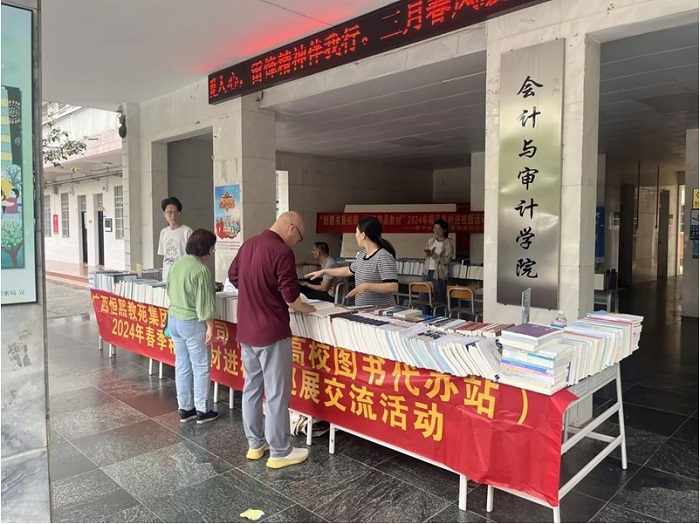 为做好2024秋季高校教材选用工作,推动国家级规划教材、优质新版教材进课堂,提高区域院校的教育教学质量,带动整体教学水平的提高,帮助广大师生选用优秀教材、新版教材,助推学校的教材建设工作,广西高校图书代办站(广西恒熙教苑集团有限公司)举办了广西地区“2024年精品教材进校园巡展交流活动”。