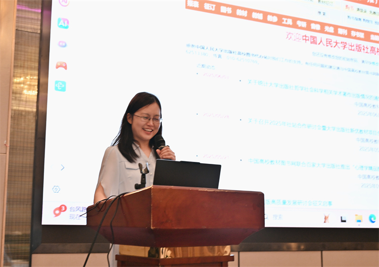 中国海洋大学出版社教材服务中心经理张永洁分享了海洋科学类教指委规划教材及其他海洋类、水产类、化学实验类、影视艺术类等特色学科教材,凸显了该社在海洋及相关学科教材建设上的深厚积淀与独特优势。