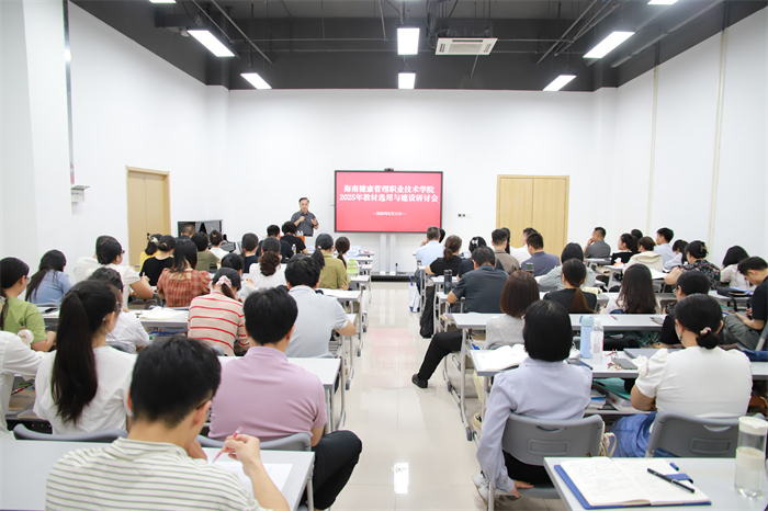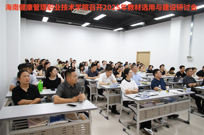 2025年6月11日下午,海南健康管理职业技术学院召开2025年教材选用与建设研讨会。本次研讨会召开的目的是落实2025年海南省教材管理人员培训会议精神,扎实推进“三教”改革、“五金”建设走深走实,进一步提升学院教材建设水平,助力教师遴选优质教材,把握学科前沿动态,编写出版高质量教材,推动新形态教材进课堂,提高教书育人质量,为学院内涵式高质量发展奠定基础。