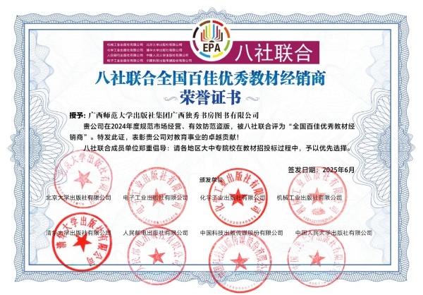 近日,八社联合委员会组织开展的2024年度全国“百佳经销商”评选活动落下帷幕。广西师范大学出版社高校图书代办站凭借其专业化、高效率的高校教材服务体系,被八社联合评为“全国百佳优秀教材经销商”。该奖项是对广西师范大学出版社高校图书代办站长期扎根高校、在出版资源与教学需求间构建可持续服务生态的创新成果的充分肯定。