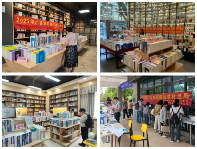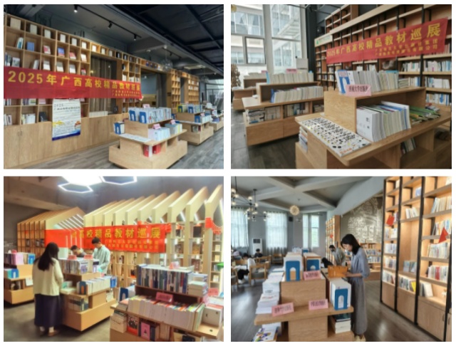 广西师范大学出版社高校图书代办站充分发挥平台枢纽作用,携手出版界与高校深化合作、优化教材服务模式。2025年,广西师范大学出版社高校图书代办站成功举办“广西高校精品教材巡展”活动,覆盖全区15所高校,历时56天,整合了北京大学出版社、北京师范大学出版社、电子科技大学出版社、高等教育出版社等60余家出版社资源。活动现场,7000余种精品教材亮相展览,3000余名师生参与了教材巡展,千余名教师登记了样书,选赠样书超1000本。教材巡展不仅为高校教师提供了专业、丰富的教材信息与资源,也为出版社精准把握教学一线需求、优化教材研发提供了高效的反馈渠道。