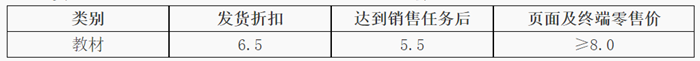 发货折扣65折,达到销售任务55折,页面及终端零售价不低于8折。