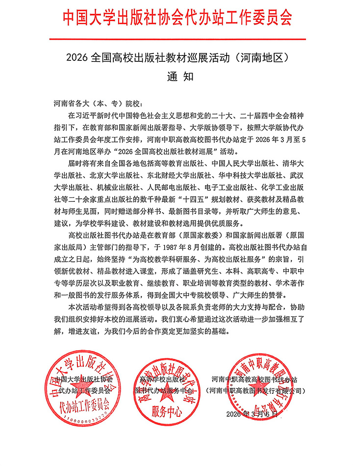 2026全国高校出版社教材巡展活动(河南地区)通知 - “2026全国高校教材巡展活动”专栏 - 中国高校教材图书网