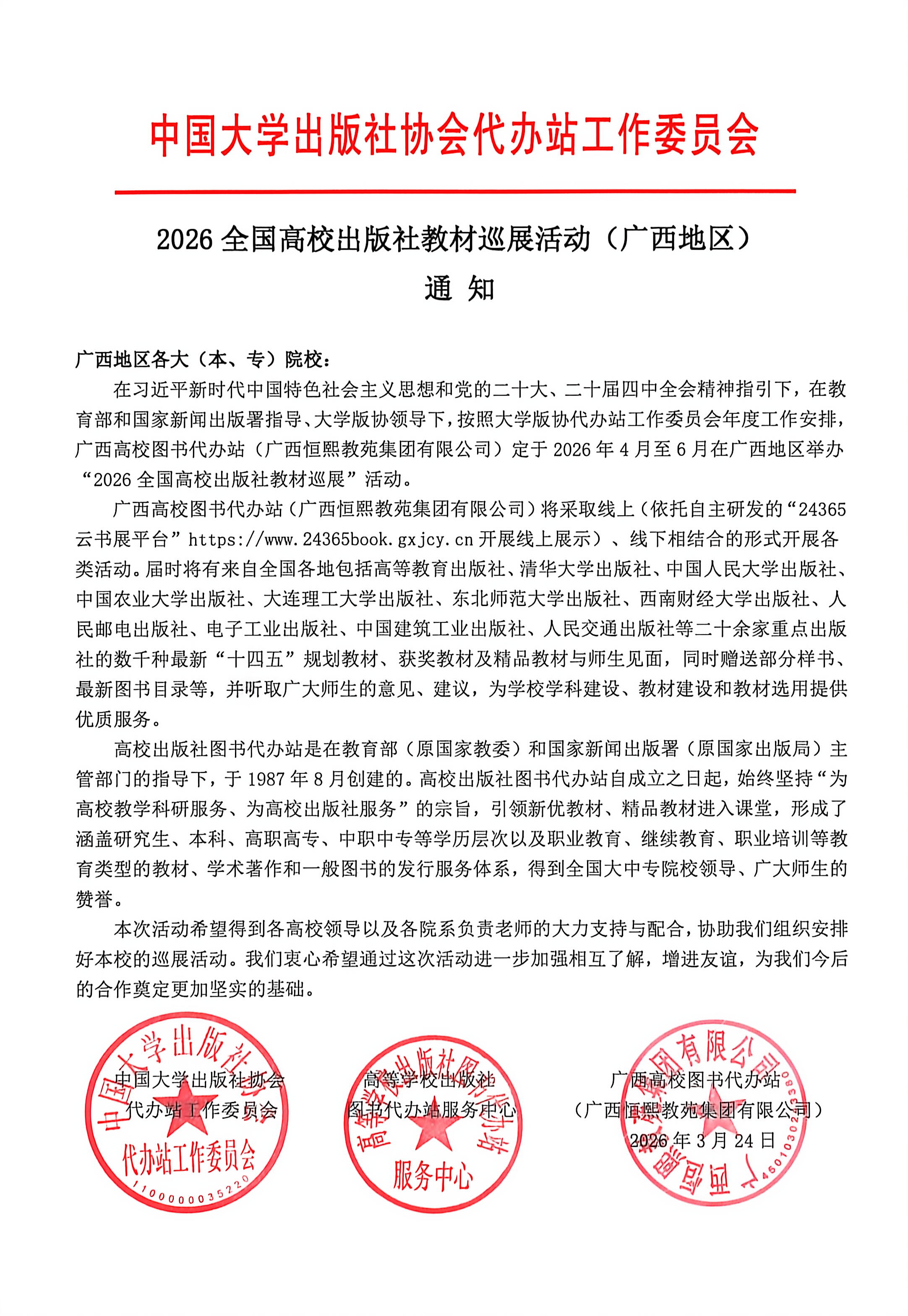 2026全国高校出版社教材巡展活动(广西地区)通知 - “2026全国高校教材巡展活动”专栏 - 中国高校教材图书网