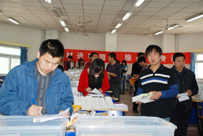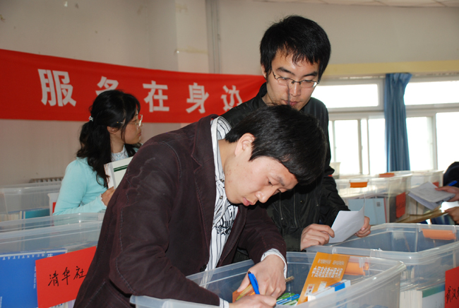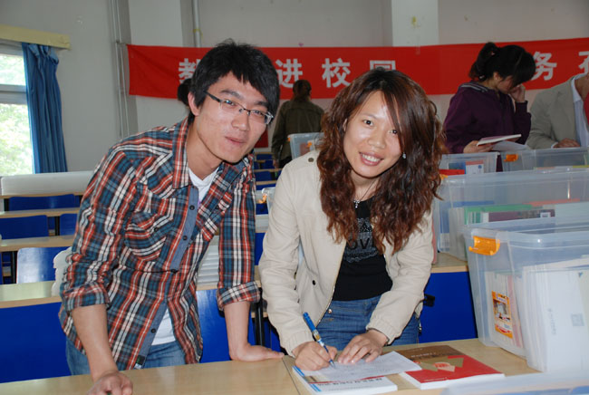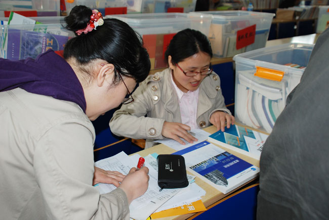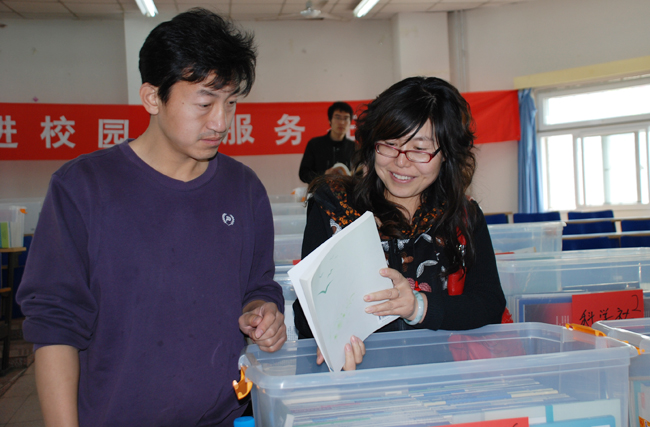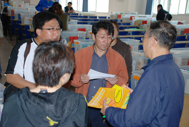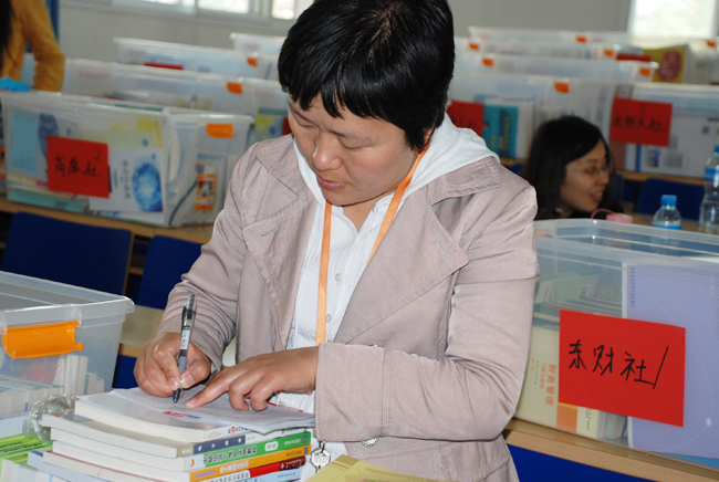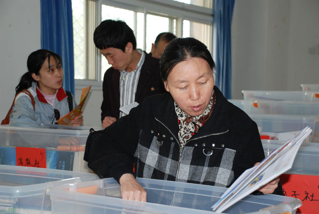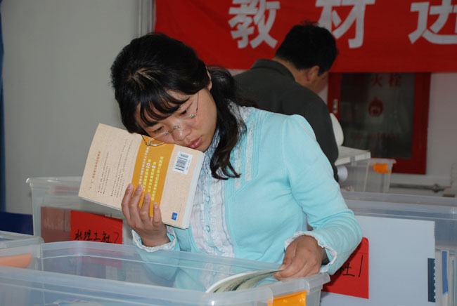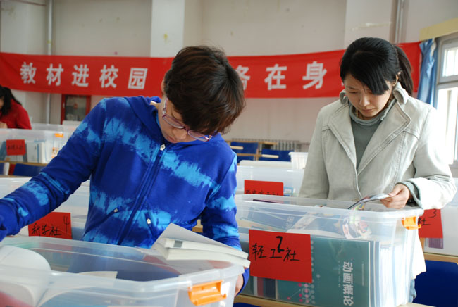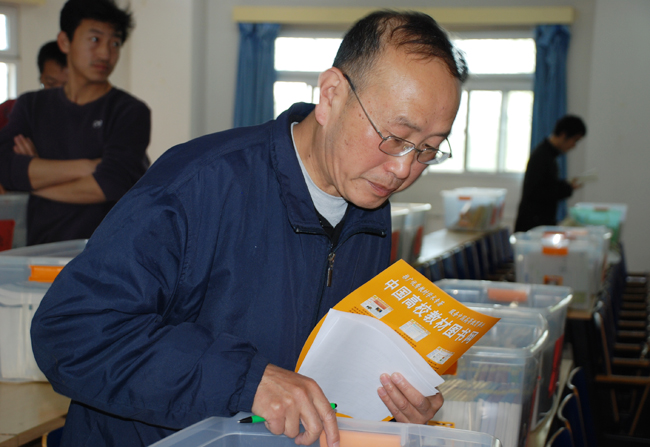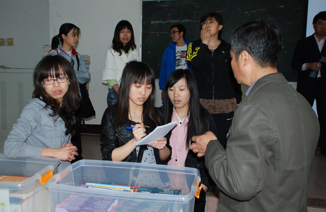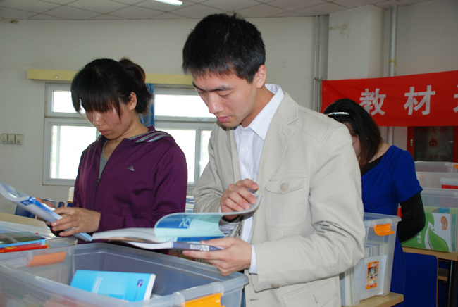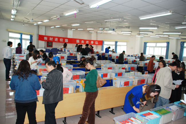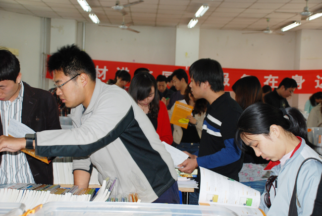 照片7-18 教师学生认真挑选教材