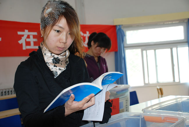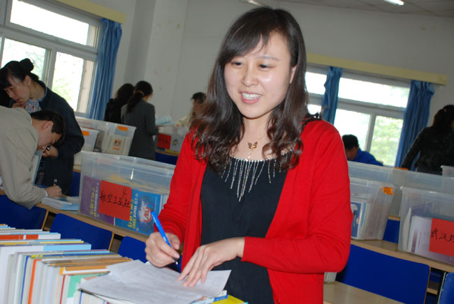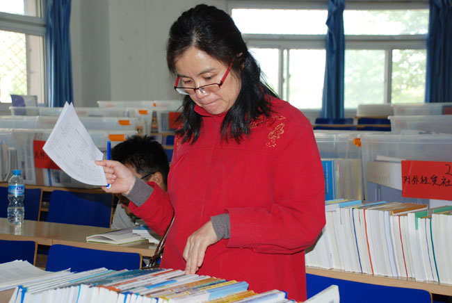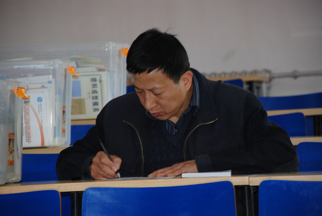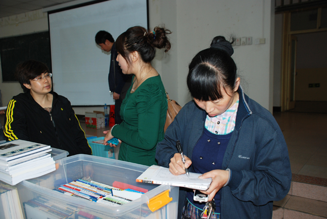 照片19-28 教师认真填写样书申领单